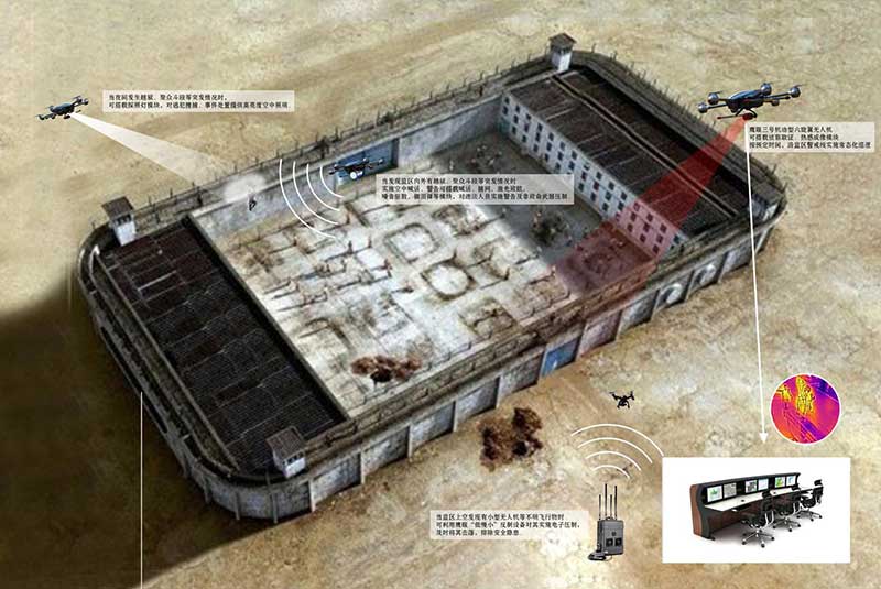 鷹眼警用無(wú)人機(jī)系統(tǒng)可在監(jiān)區(qū)外圍及上空,實(shí)施常態(tài)化的空中巡邏,并根據(jù)需要完成定點(diǎn)監(jiān)控、空中照明、空中喊話、非致命武器壓制等應(yīng)急處置任務(wù)。