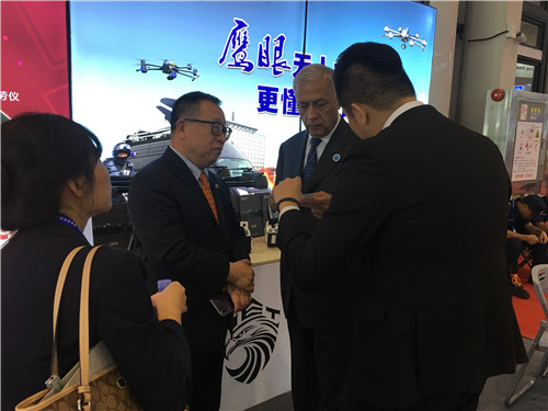 (新加坡無人機產(chǎn)業(yè)協(xié)會主席視察鷹眼展位)