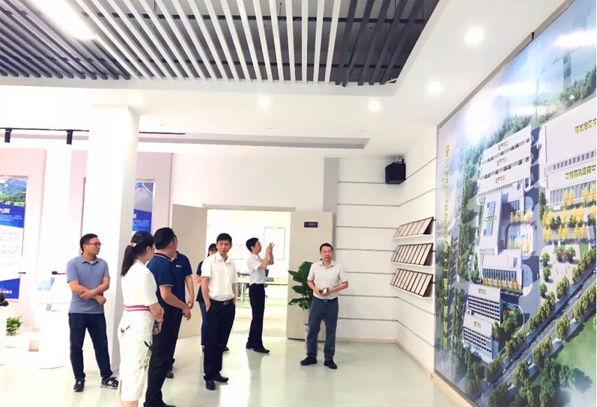 參觀過程中,基地常務副總經理胡成浩引導各領導分別參觀公司的榮譽專利展示墻、整體規(guī)劃布局圖并做詳細講解。