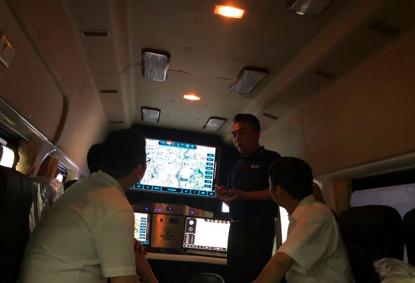 隨后,考察團一行人由胡總陪同著重參觀了公司的展演中心及室內無人機訓練館,視察了公司重點無人機機型及各功能模塊,分別介紹了相關功能及生產工藝,得到了一致認可和贊許。其中,地面無人機指揮控制車獲得了眾客戶的格外關注和深入了解。
